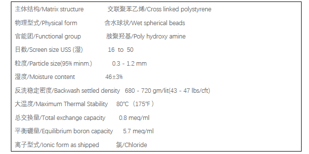 | 產 品: 特種離子交換樹脂 | 型 號:除硼樹脂CH-99 |