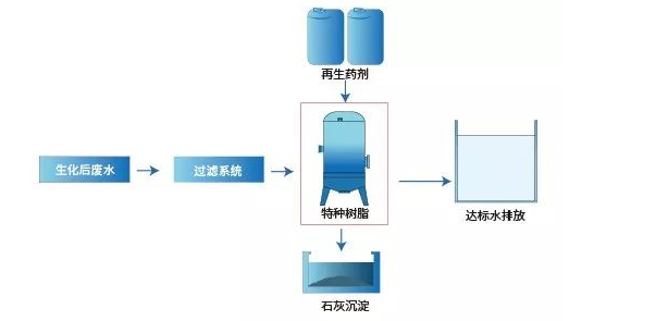 科海思根據項目具體情況,結合自身技術和Tulsimer?A-107樹脂的性能優勢,采用精密過濾器+除磷樹脂系統,通過選擇性吸附磷酸鹽釋放氫氧根離子,從而達到深度除磷的目的。
